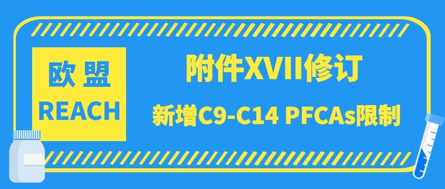 2021年8月5日,歐盟在其官方公報(OJ)發布法規(EU) 2021/1297,對歐盟REACH法規((EC) No 1907/2006) 附件XVII進行修訂,將原第68項替換為C9-C14 PFCA及其鹽類和C9-C14 PFCA相關物質的限制。該法規將在歐盟官方公報上發布第20天開始生效。